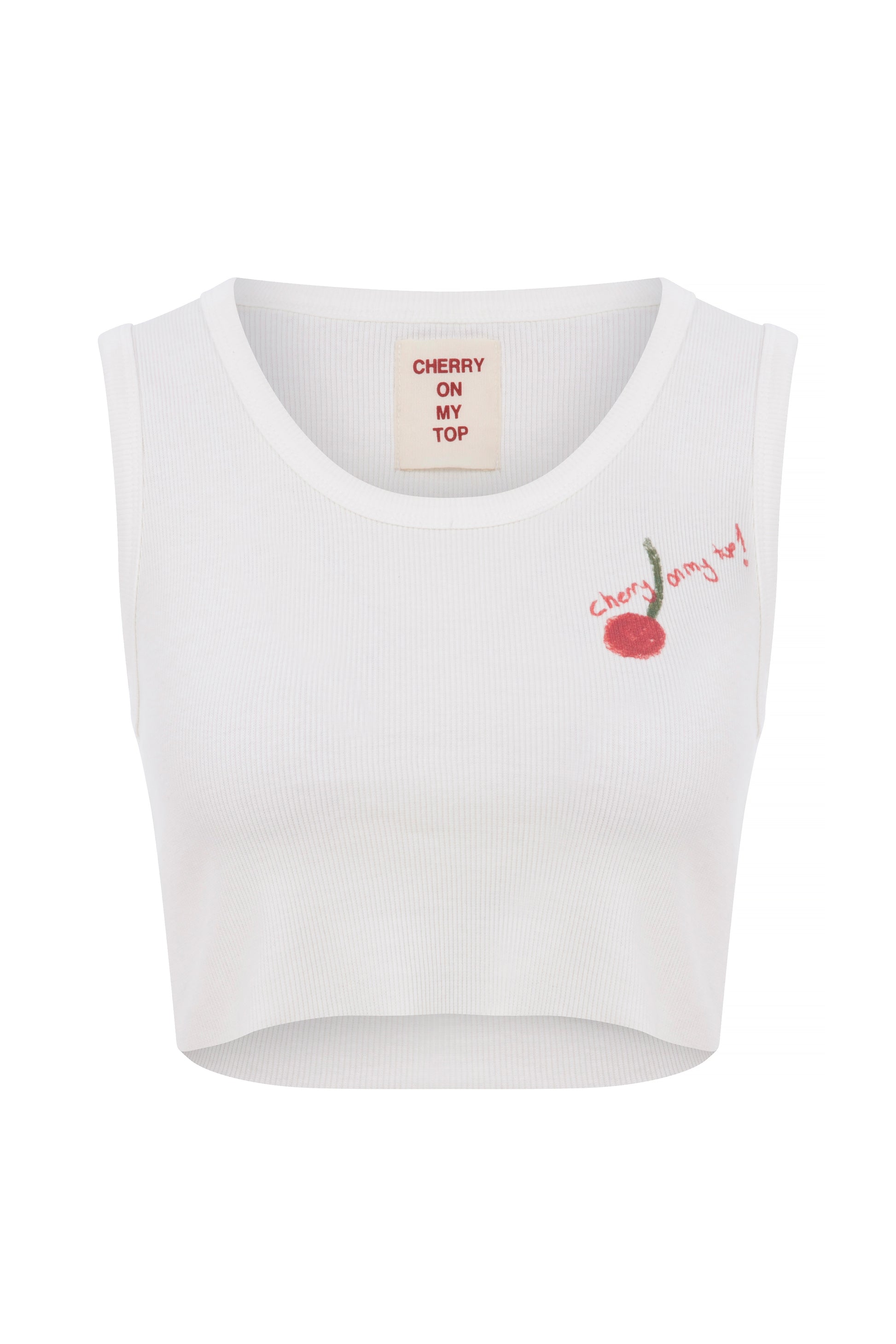 95% cotton, 5% lycra. Kashkorse fabric. “Cherry on my top!” print on front. Cropped cut.